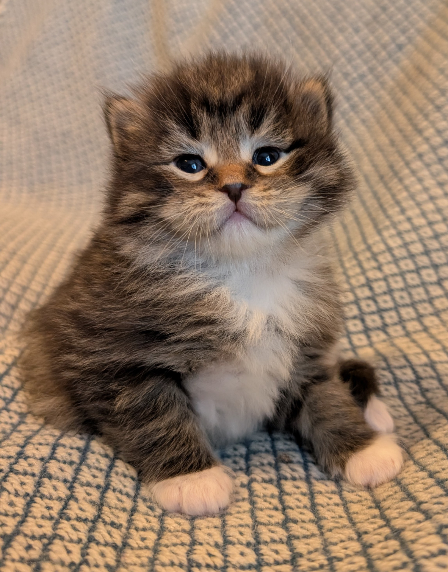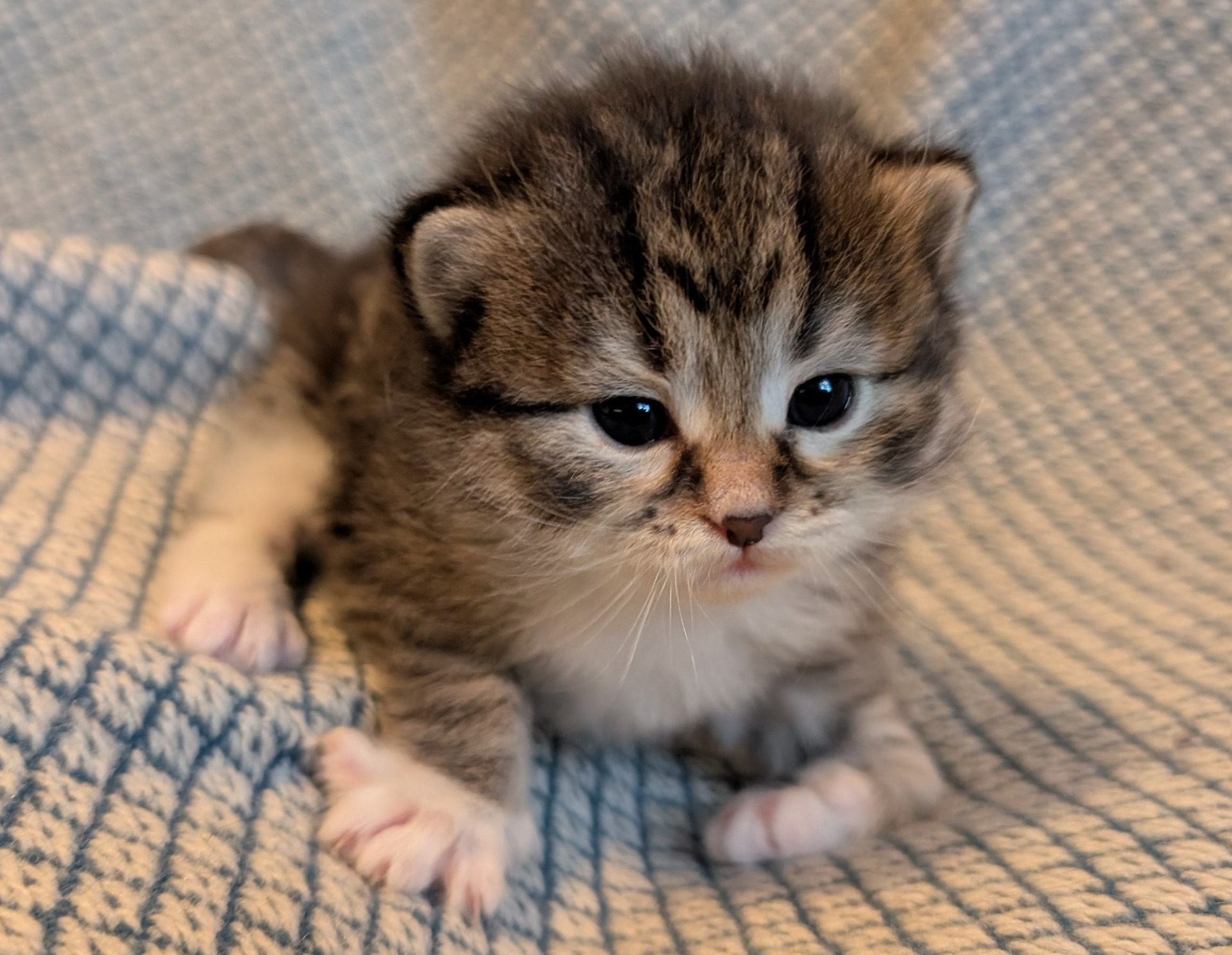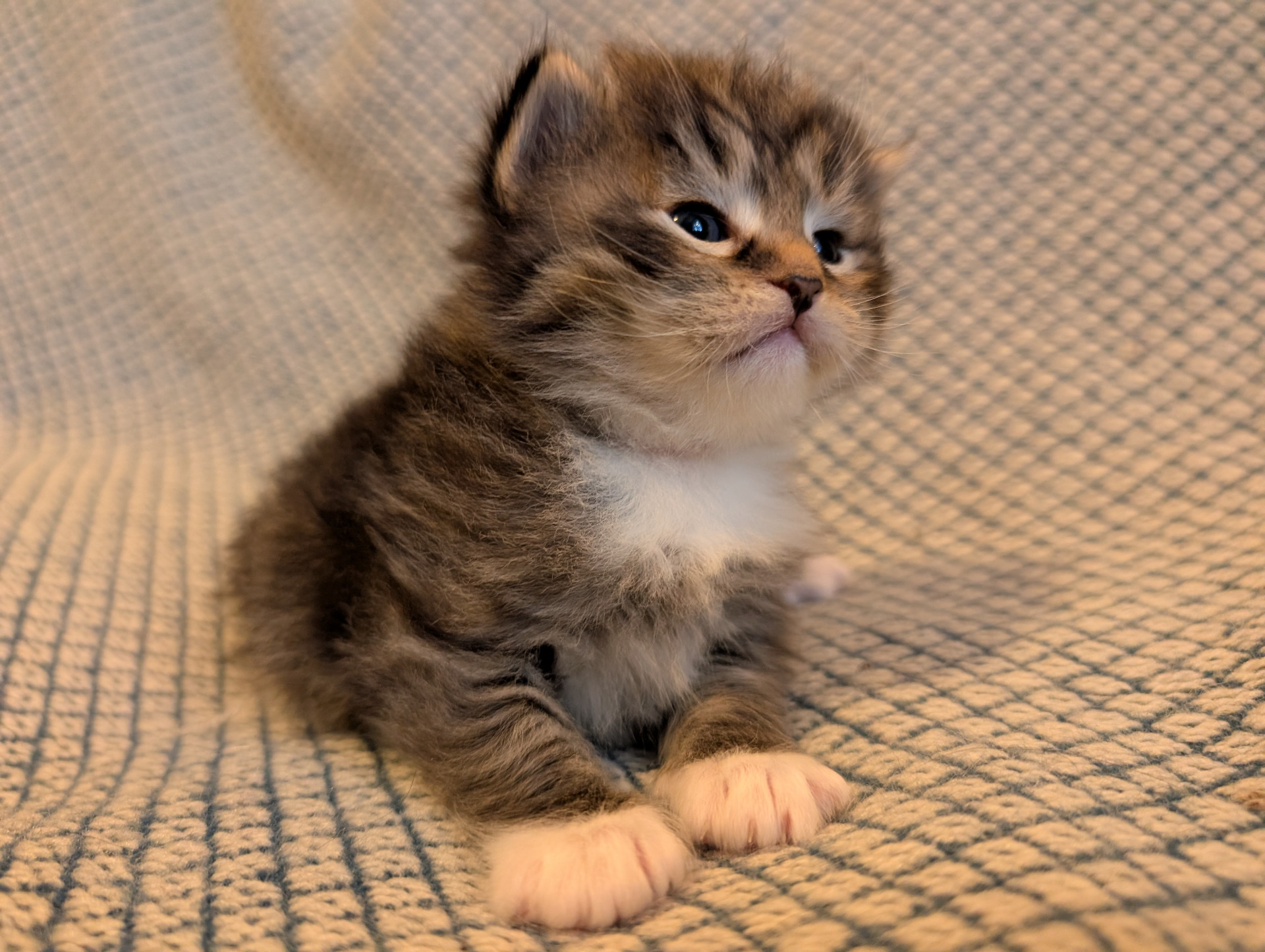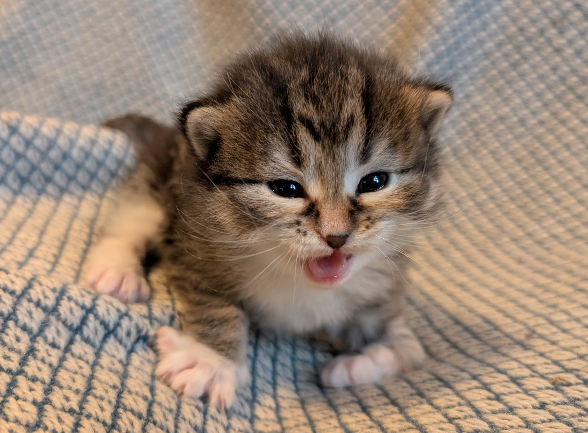 Nu är det tre pigga ögonpar som plirar upp från bolådan. Småostarna tultar runt för fulla muggar. På sin treveckorsfödelsedag fick de flytta till en större bolåda och började genast undersöka sina nya terränger. Utvecklingen går rasande fort och under veckan som gått har de upptäckt att det är riktigt kul att busa med varandra. Medan Stilton helst vill busa med systrarna har Pecorino och Cheddar noterat att det är mysigt att undersöka människotassar och få klappar. Cheddars första upplevelse av att bli kliad på magen ledde till belåtet kurrande. Tar hon efter mamma Mymlan, månntro?